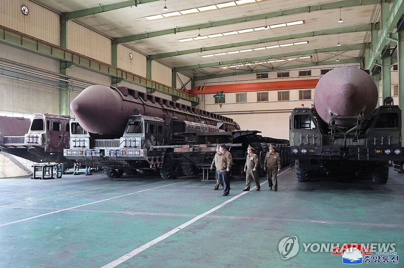 The Hwasong-18 is a solid-fuel ICBM that is presumed to have a range long enough to strike the U.S. mainland if fired at a normal trajectory. The North staged the missile's maiden flight in April last year on a lofted trajectory.