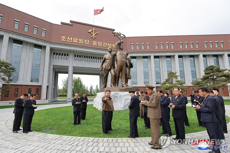 | ▲ North Korean leader Kim Jong-un (C) inspects the newly built Central Cadres Training School of the Workers' Party of Korea in Pyongyang on May 15, 2024, in this photo released by the North's official Korean Central News Agency the next day. (For Use Only in the Republic of Korea. No Redistribution) (Yonhap) |