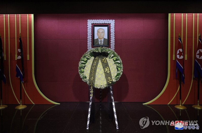 ▲ This photo, released by the Korean Central News Agency on May 8, 2024, shows the funeral hall of Kim Ki-nam, former secretary of the Central Committee of the North's ruling Workers' Party. (For Use Only in the Republic of Korea. No Redistribution) (Yonhap)