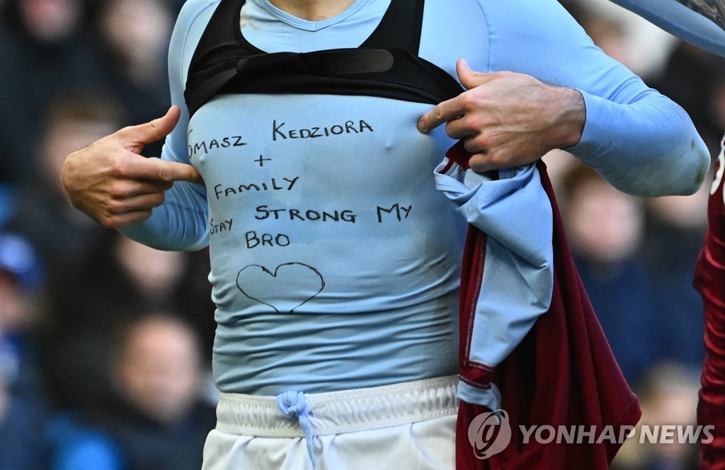 애스턴 빌라의 매티 캐시는 브라이턴 앤드 호브 앨비언을 상대로 골을 넣은 뒤 유니폼 상의를 벗고 '힘을 내, 형제여'라고 적힌 속옷을 보여주는 세리머니를 펼쳤다.