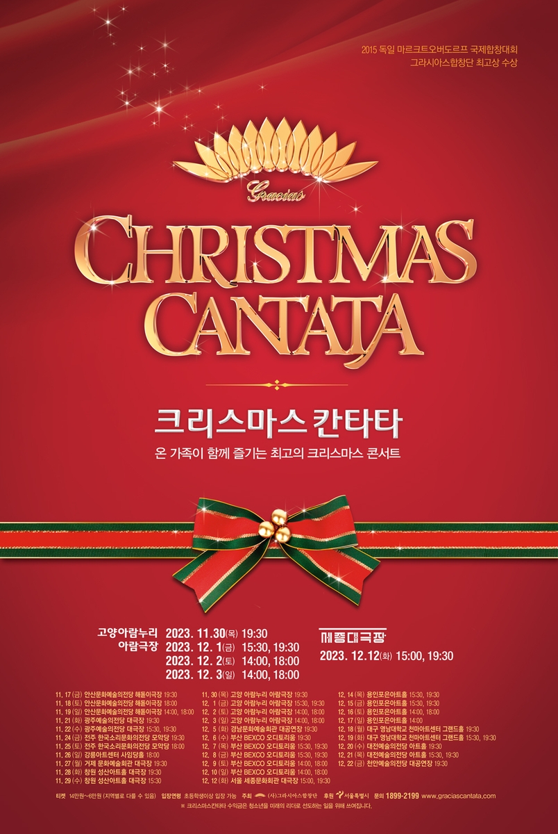 '크리스마스 칸타타'는 그라시아스합창단이 2001년부터 매년 개최하고 있는 연말 공연이다. 2019년 미국 투어에 나서는 등 국내외 무대에서 공연을 펼쳤다.