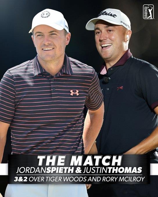 | ▲ 더 매치에서 이긴 스피스(왼쪽)와 토머스 조. [미국프로골프(PGA) 투어 소셜 미디어 사진. 재판매 및 DB 금지] |