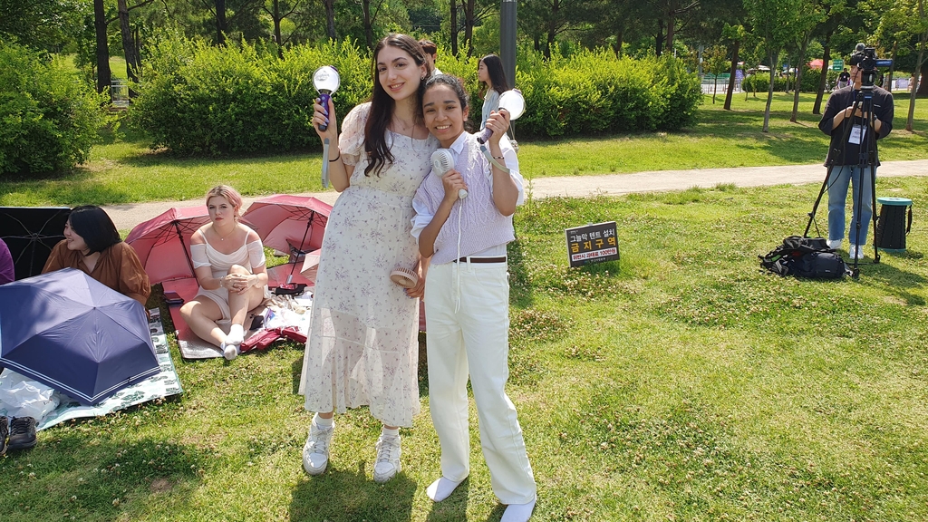 미국 하와이에서 온 제니 에자키 씨와 라스베이거스에서 온 데절리 웰링어 씨는 라이브스크린이 잘 보이는 나무 아래 테이블에 앉아 축제를 즐겼다. 2주 전 한국에 입국한 이들은 오전 9시 30분 행사장을 찾았다고 했다.