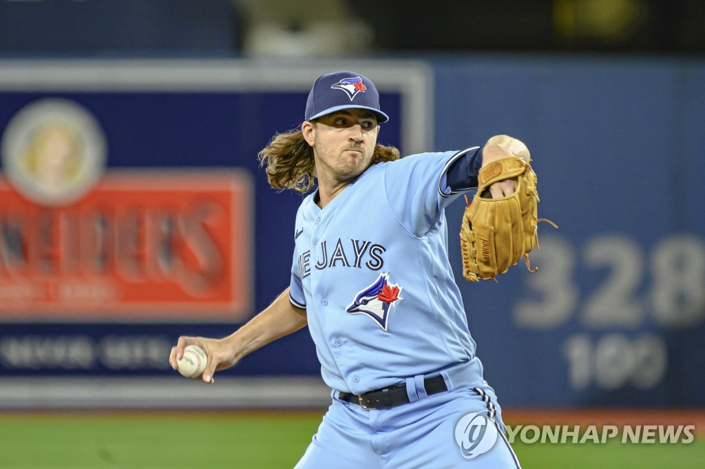 | ▲ 역투하는 가우스먼 (토론토 AP=연합뉴스) 토론토 블루제이스 우완 케빈 가우스먼이 2일(한국시간) 캐나다 토론토 로저스센터에서 열린 휴스턴 애스트로스와의 홈 경기에 선발 등판해 역투하고 있다. |