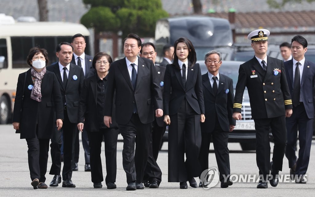 | ▲ President Yoon Suk Yeol and first lady Kim Keon Hee arrive at the national cemetery in Daejeon, 139 kilometers south of Seoul, on March 24, 2023. (Yonhap) |