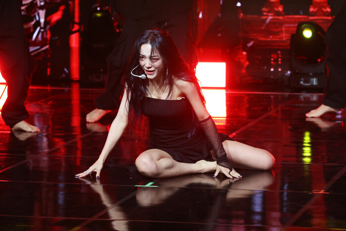 South Korean singer Kim Se-jeong performs during a publicity event in Seoul on Sept. 4, 2023, to promote the release of her first album "Mun (Gate)" with the title song "Top or Cliff." (Yonhap)