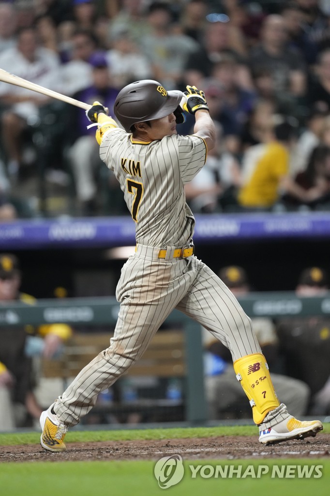 김하성은 25일(한국시간) 미국 콜로라도주 덴버의 쿠어스 필드에서 열린 2022 미국프로야구 메이저리그(MLB) 콜로라도 로키스와의 방문 경기에 7번 타자 유격수로 선발 출전해 3타수 1안타 2타점 1볼넷을 기록했다.