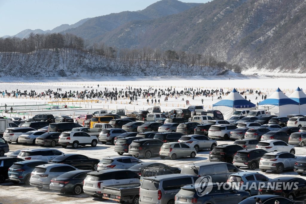 축제장인 인제군 남면 빙어호 일원은 이른 오전부터 빙어낚시를 손꼽아 기다린 관광객들로 가득 찼다.