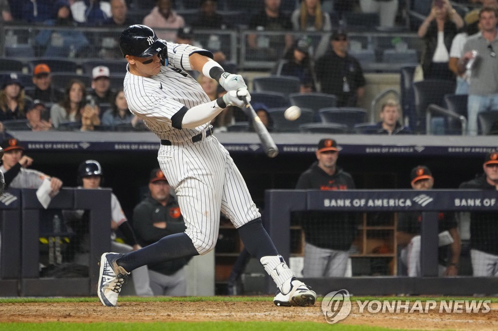 저지는 24일(한국시간) 미국 뉴욕 양키스타디움에서 열린 볼티모어 오리올스와의 홈경기에서 4-5로 패색이 짙던 9회말 1사 주자 없는 상황에 나와 5-5 동점을 이루는 좌월 솔로 아치를 그렸다.