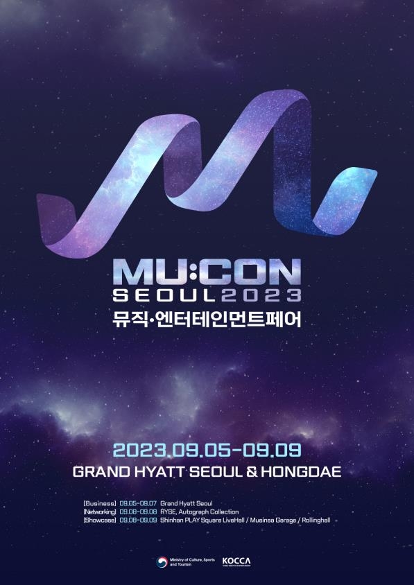 한국콘텐츠진흥원은 아시아 최대 뮤직 마켓 '2023 뮤직·엔터테인먼트 페어-뮤콘(MU:CON) 2023'을 5일부터 9일까지 5일간 서울 한남동 그랜드하얏트 서울과 홍대 일대에서 연다.