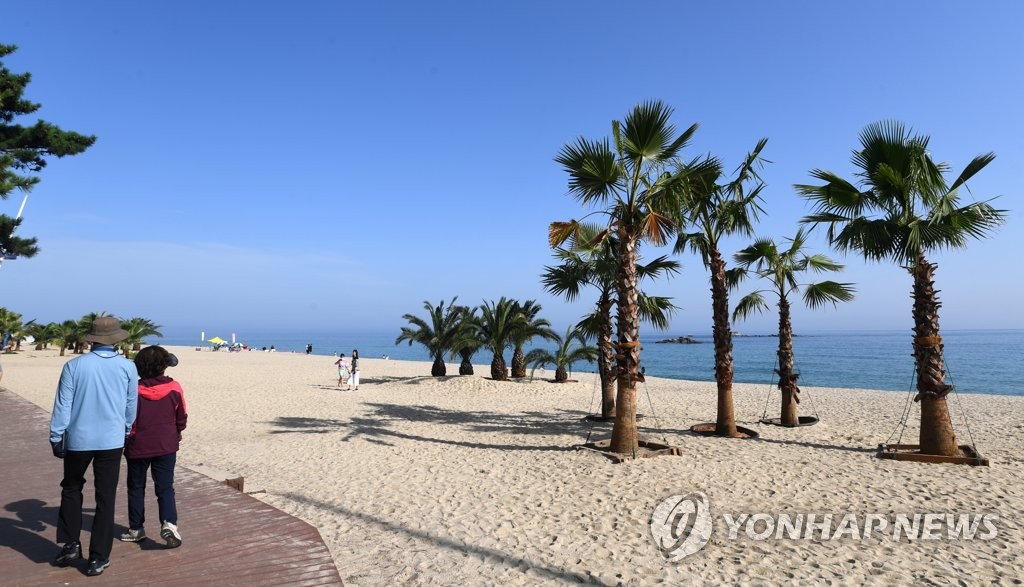 시는 지난해 9월 경포해변 중앙광장 일원에 제주도와 일부 남쪽 지역에서 주로 볼 수 있는 워싱턴야자, 키나리아야자 등 야자수 50그루를 심고 포토존을 만들어 큰 관심을 끌었다.