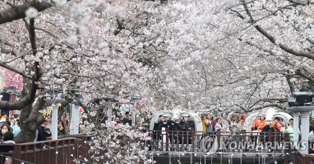 | ▲ 4년 만에 찾아온 진해군항제 (창원=연합뉴스) 김동민 기자 = 24일 오후 경남 창원시 진해구 여좌천 일대에서 상춘객이 활짝 핀 벚꽃을 감상하고 있다. 2023.3.24 |