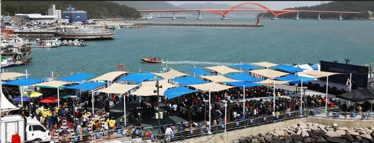 (강진=연합뉴스) 조근영 기자 = 올해 새롭게 단장해 문을 연 전남 강진군 '마량놀토 수산시장'에 인파가 몰렸다.