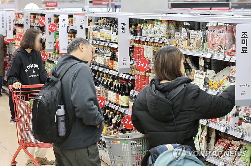 | ▲ Shoppers select groceries at a supermarket in Seoul on Nov. 7, 2023. (Yonhap) |