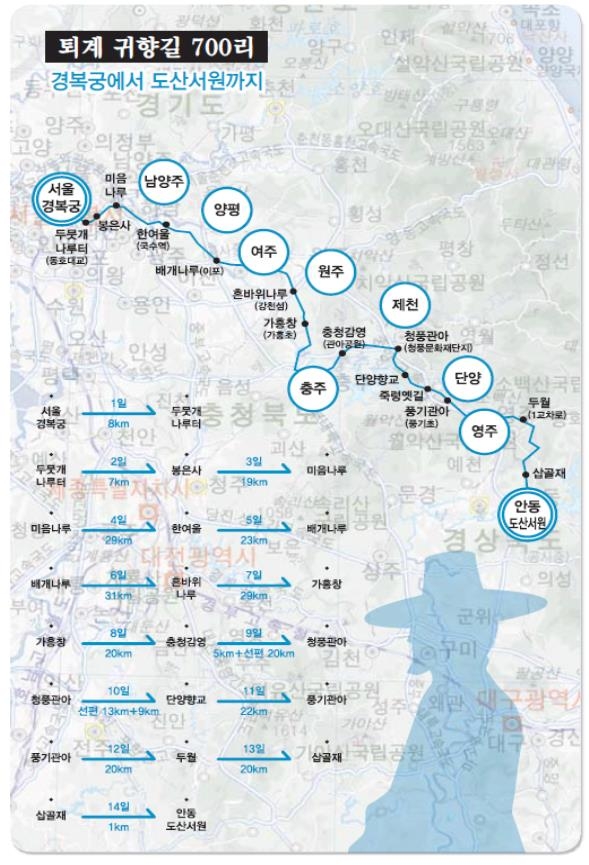 ▲ '퇴계선생 마지막 귀향길 걷기' 코스 [경상북도 제공. 재판매 및 DB 금지]
