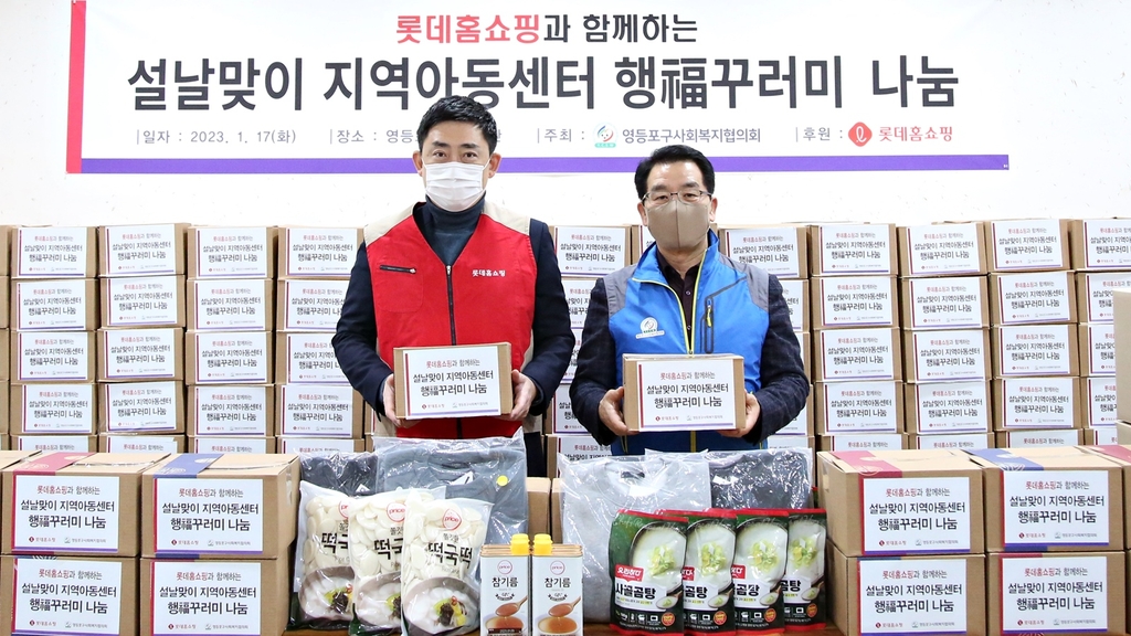 ▲ 롯데홈쇼핑은 설을 앞두고 서울 영등포 지역 소외계층 아동을 위해 방한용품과 명절 간편식을 기부했다고 17일 밝혔다. 이번 행사는 롯데홈쇼핑 본사가 위치한 영등포 지역을 대상으로 한 '희망수라간' 사회공헌 활동의 일환이다. 롯데홈쇼핑이 전달한 기능성 내복과 간편식은 이 지역 아동 350명에게 전달될 예정이다. (서울=연합뉴스)