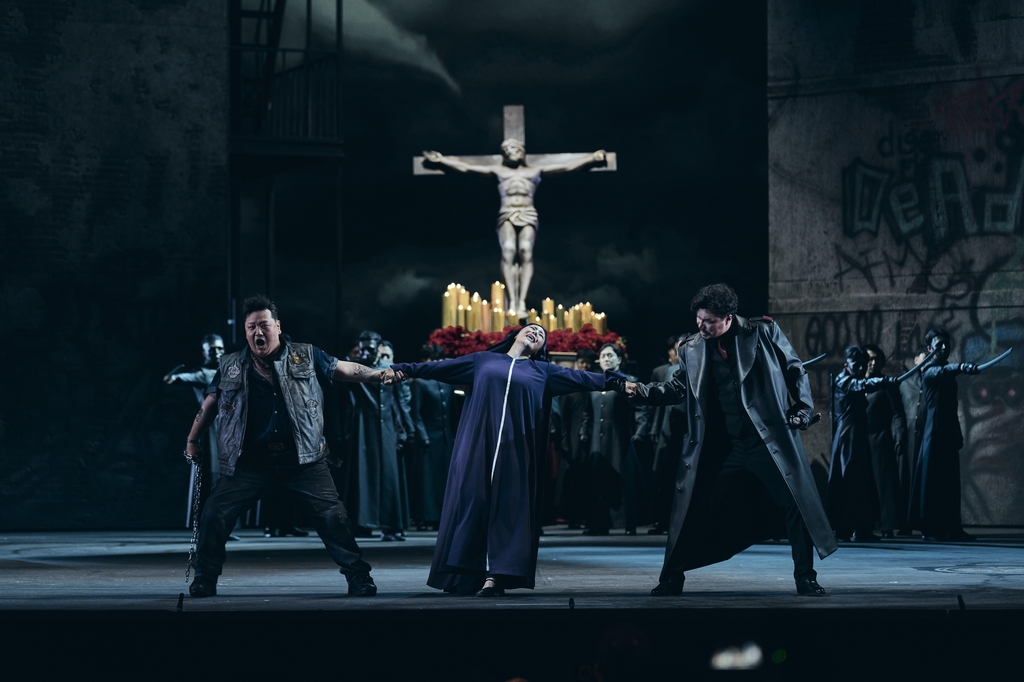 지난해 선보인 오페라 '아틸라'에 이어 두 번째로 국립오페라단 작품의 연출을 맡은 이탈리아의 거장 잔카를로 델 모나코는 현대적 연출로 관객들에게 숨 돌릴 틈을 주지 않았다. 덕분에 객석의 열기는 최대치로 끓어올랐다.