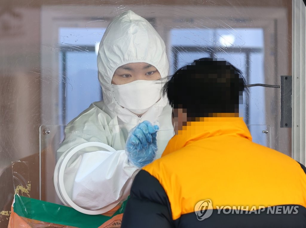 | ▲ A medical worker carries out COVID-19 tests at a makeshift clinic in central Seoul on Feb. 27, 2021. (Yonhap) |
