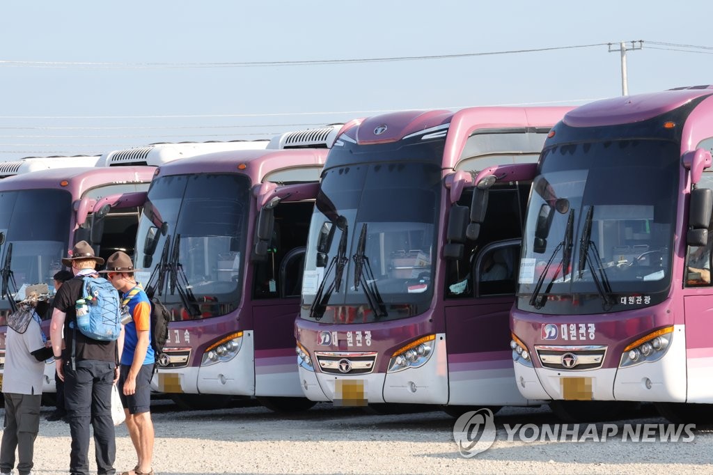 잼버리 영지 내에도 스카우트 대원들을 영외 프로그램 행사장으로 옮기려는 버스들이 집결해 있었다.