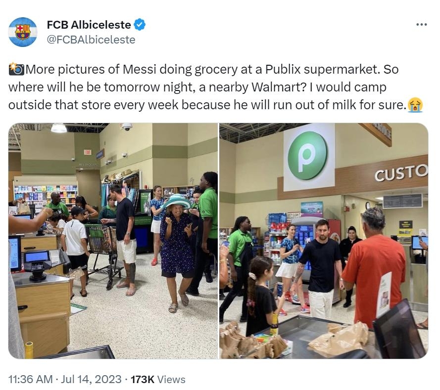 메시의 사진을 본 팬들은 SNS에 사진을 공유하며 "아르헨티나에서는 팬들에 둘러싸여 자기 집조차 들어가기 어려웠던 메시가 미국에서는 아무 간섭도 받지 않고 퍼블릭스에서 쇼핑을 한다"라고 썼다.