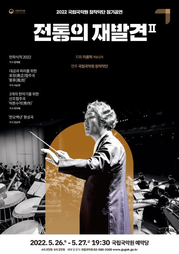 ▲ 국립국악원 창작악단 정기공연 = 국립국악원은 오는 26~27일 이틀간 오후 7시 30분 국악원 예악당에서 창작악단 정기공연 '전통의 재발견II'를 마련한다.