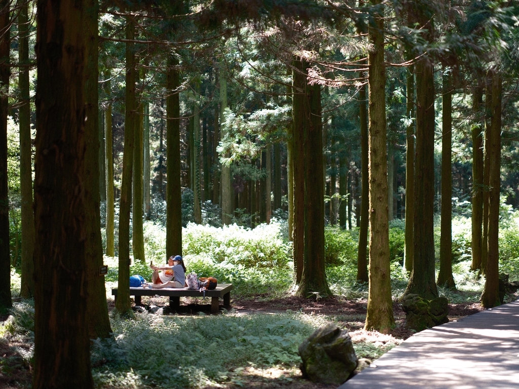 편백나무와 삼나무가 가득해 숲속에 있는 것만으로도 몸과 마음이 치유되는 곳이다.