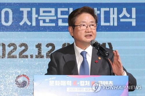박 장관은 관광 분야와 관련해서도 "관광 상품에 대체 불가능한 무기인 'K 컬처'를 멋있고 세련되게 탑재한다"며 "2023~2024년 한국방문의해를 관광대국 원년으로 삼고 1년 365일 동안 한국에 오면 K 컬처를 경험할 수 있는 무대와 프로젝트를 마련하고 있다"고 소개했다.