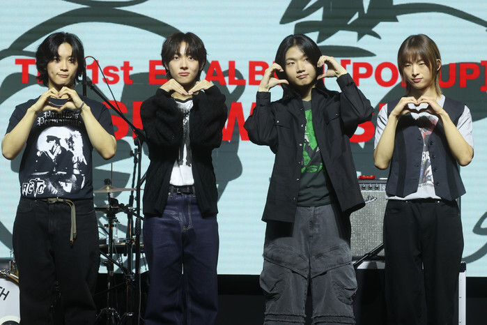 South Korean rock band Dragon Pony poses for a photo during a showcase to promote the group's debut album "POP-UP" in Seoul on Sept. 26, 2024. (Yonhap)