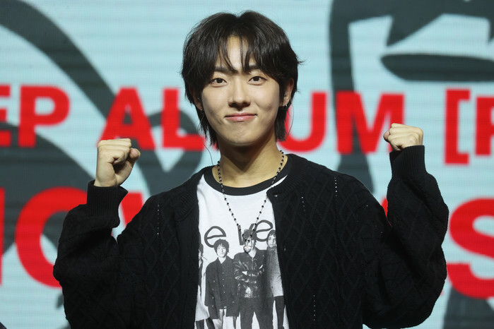 Ahn Tae-kyu, a member of South Korean rock band Dragon Pony, poses for a photo during a showcase to promote the group's debut album "POP-UP" in Seoul on Sept. 26, 2024. (Yonhap)