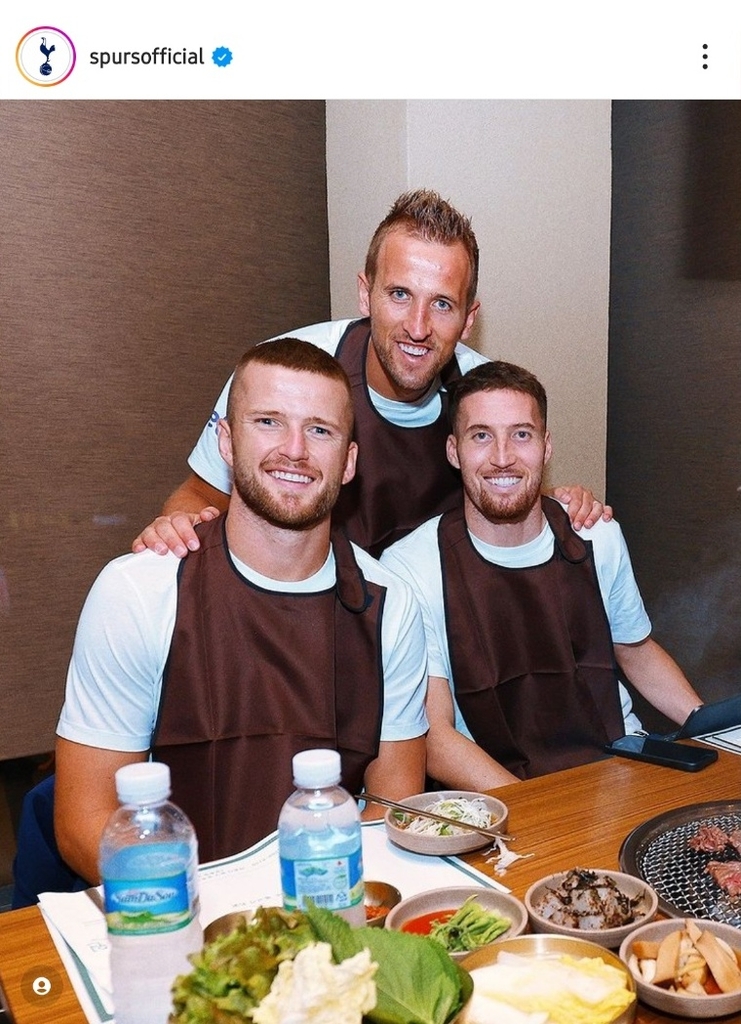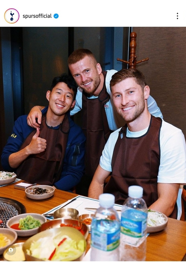 토트넘은 15일 구단 소셜 미디어를 통해 "어젯밤 손흥민이 선수들을 서울의 BBQ 레스토랑으로 데려갔다"고 소개하며 선수들이 식당에 앉아 있는 사진을 공개했다.