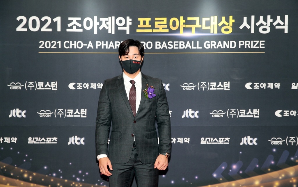 ▲ 김하성, 조아제약 프로야구 대상 특별상 수상 (서울=연합뉴스) 김하성이 8일 서울 중구 소공동 더플라자호텔에서 열린 2021 조아제약 프로야구 대상 시상식에서 특별상을 받은 뒤, 기념 촬영을 하고 있다. [일간스포츠 제공. 재판매 및 DB금지]