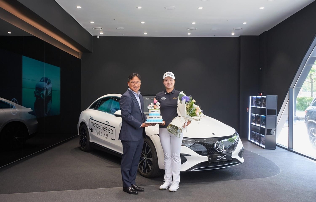 (서울=연합뉴스) 권훈 기자 = 메르세데스-벤츠 공식 딜러 더클래스 효성이 지난달 크리스에프앤씨 제45회 KLPGA 챔피언십에서 홀인원을 한 한진선에게 메르세데스-벤츠 EQE 승용차를 전달했다고 19일 밝혔다.