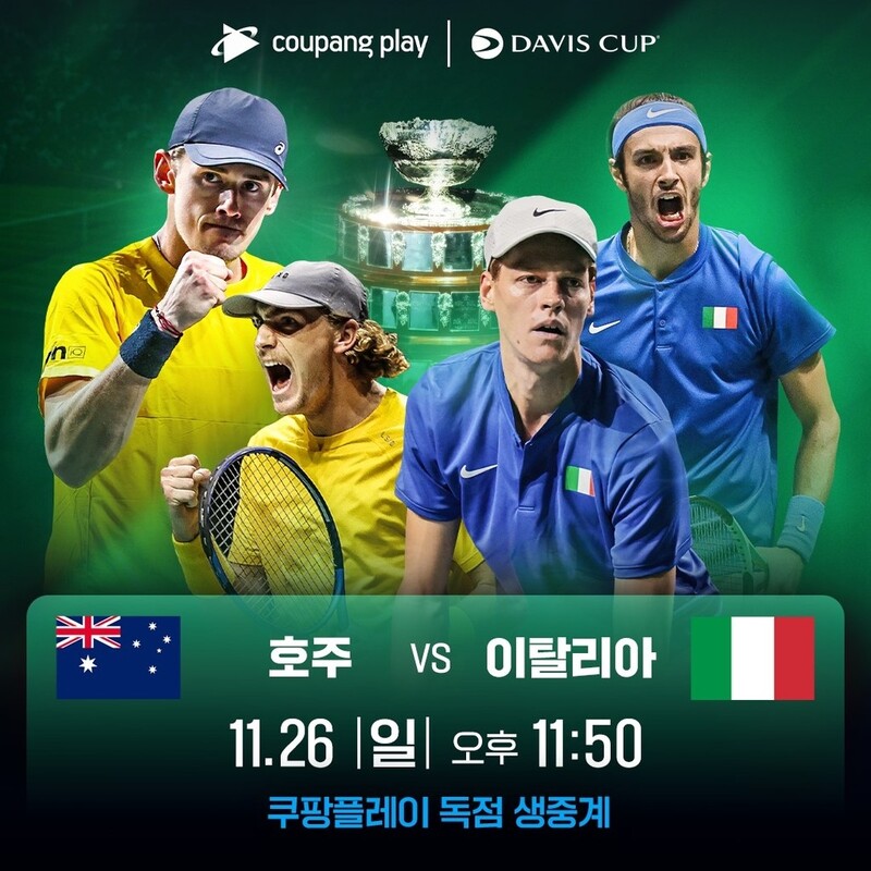 쿠팡플레이, 데이비스컵 호주―이탈리아 결승전 독점 생중계