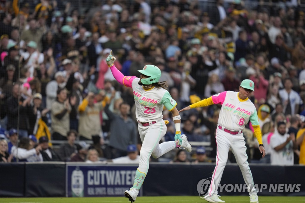 샌디에이고의 1번 타자 페르난도 타티스 주니어는 0-1로 뒤진 3회 중월 동점 솔로포를 터뜨린 데 이어 1-1인 5회에는 무사 1루에서 왼쪽 담을 직선으로 넘기는 역전 투런 홈런을 연타석으로 쏴 승리의 일등 공신이 됐다.
