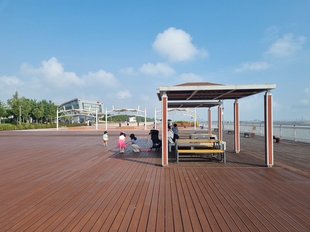 (인천=연합뉴스) 인천경제자유구역청은 서해의 아름다운 낙조를 감상할 수 있는 명소인 송도국제도시 솔찬공원에 목재 데크를 추가로 설치했다고 10일 밝혔다.