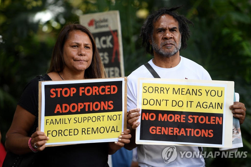 | ▲ 강제 입양 촉진 법률 폐기 요구하는 호주 시위대 (2019년) [EPA=연합뉴스 자료사진] |