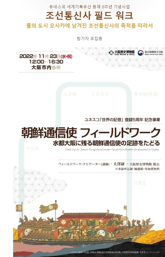 "日 물의 도시 오사카서 조선통신사 발자취를 돌아보세요"
