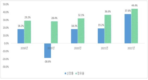 | ▲ 소설 분야 내 한국소설 판매 신장률 및 점유율 [교보문고 제공. 재판매 및 DB 금지] |