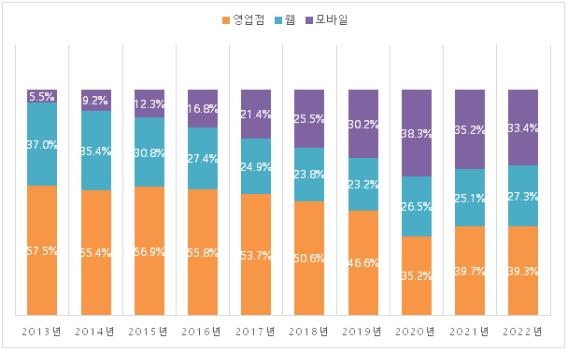 | ▲ 영업점·인터넷·모바일 채널별 직전 10년간 판매점유율 [교보문고 제공. 재판매 및 DB 금지] |