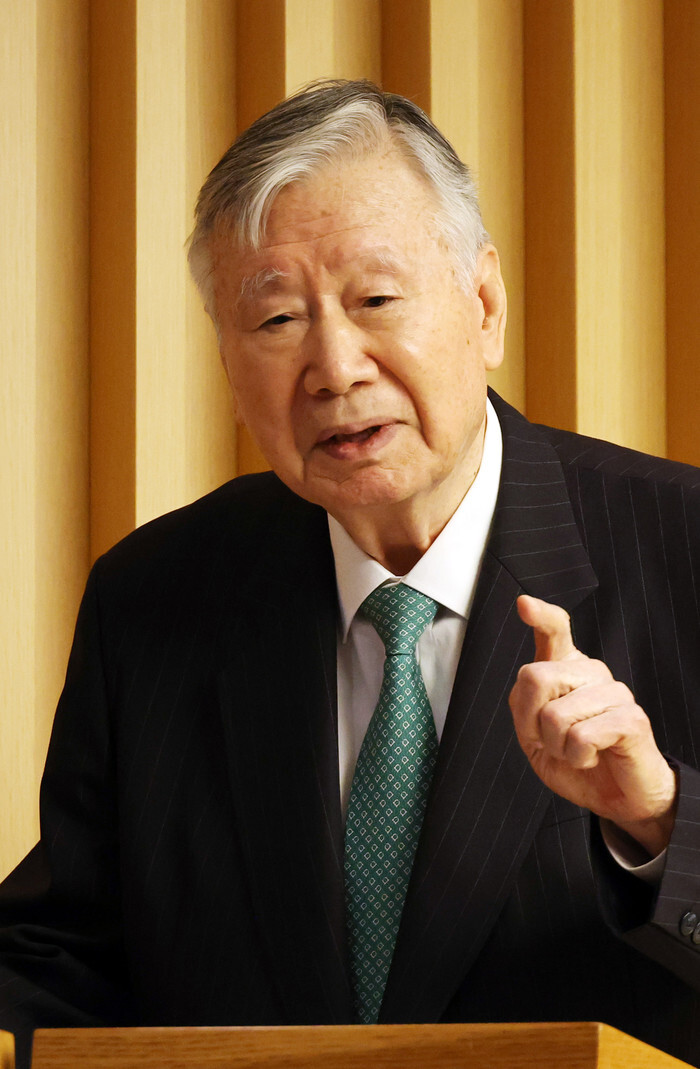 Lee Joong-keun, chairman of South Korean builder Booyoung Group, attends a press conference after providing the group's employees, who gave birth in 2024, with 100 million won (US$75,000) per birth during a ceremony to mark the start of business for the new year at the company's headquarters in Seoul on Feb. 5, 2025. (Yonhap)