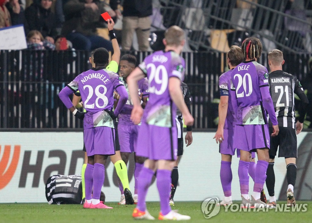 설상가상 토트넘은 윙백으로 나선 라이언 세세뇽이 전반 32분 무리한 태클로 두 번째 경고를 받고 퇴장을 당해 수적 열세까지 떠안았다.
