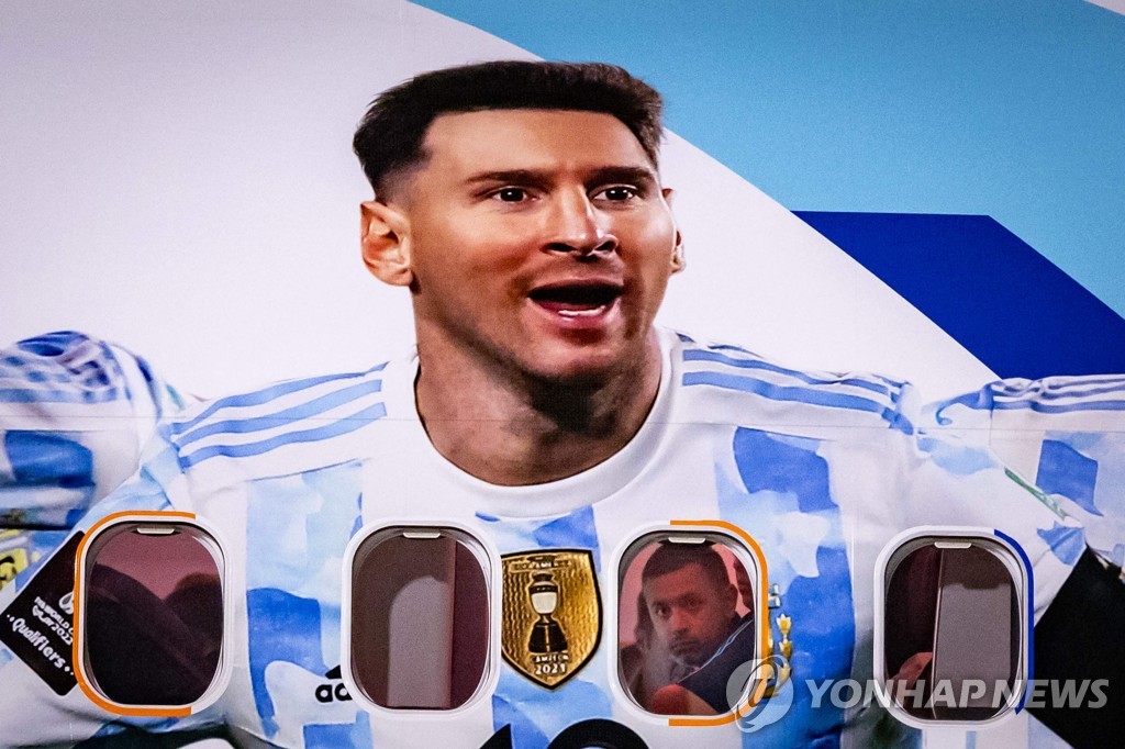 | ▲ 아르헨티나 대표팀 비행기 바깥을 장식한 리오넬 메시의 사진 [AFP=연합뉴스 자료사진] |