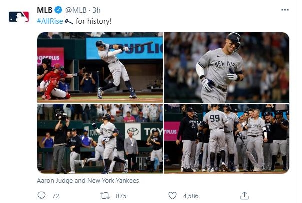 | ▲ '클린 홈런왕' 에런 저지 [메이저리그 트위터 캡처. 재판매 및 DB금지] |