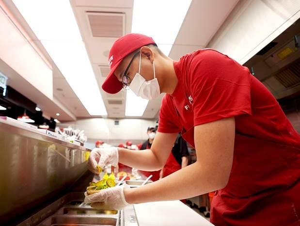 김 본부장은 실습 기간 일반 직원과 마찬가지로 붉은색 유니폼에 앞치마를 두르고 재료 손질부터 패티를 굽고 토핑을 올리는 조리 과정까지 서비스 전 과정을 체험했다.