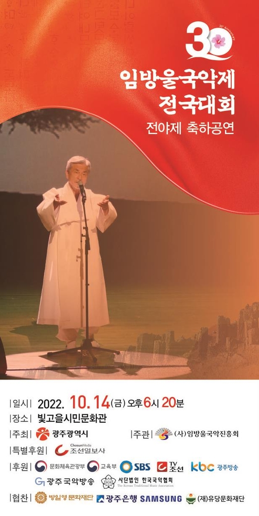 (광주=연합뉴스) 장아름 기자 = 국악 신인 등용문으로 꼽히는 제30회 임방울국악제가 14∼17일 빛고을시민문화관 등지에서 열린다.