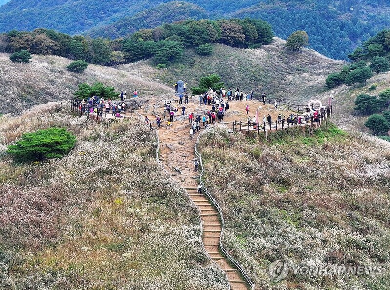 정상에 서면 바람에 출렁이는 억새 절경…관광객 발걸음 줄이어