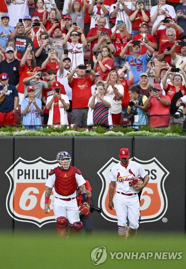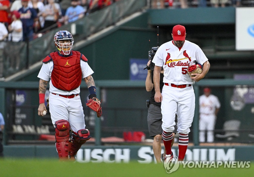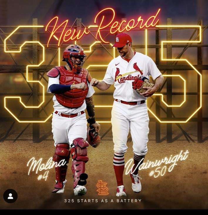(서울=연합뉴스) 장현구 기자 = 세인트루이스 카디널스의 우완 투수 애덤 웨인라이트(41)와 포수 야디에르 몰리나(40)가 선발로 호흡을 맞춘 횟수에서 마침내 미국프로야구(MLB) 신기록을 세웠다.