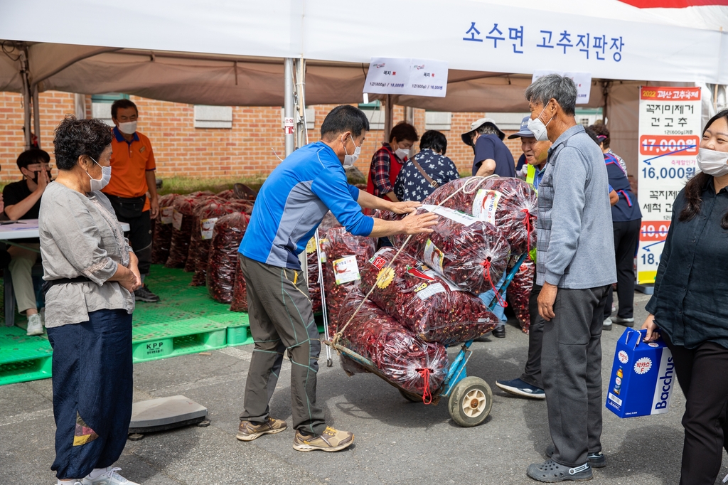 문화체육센터 일원에 마련된 장터에는 청결고추를 사려는 방문객들의 발길이 이어졌다.