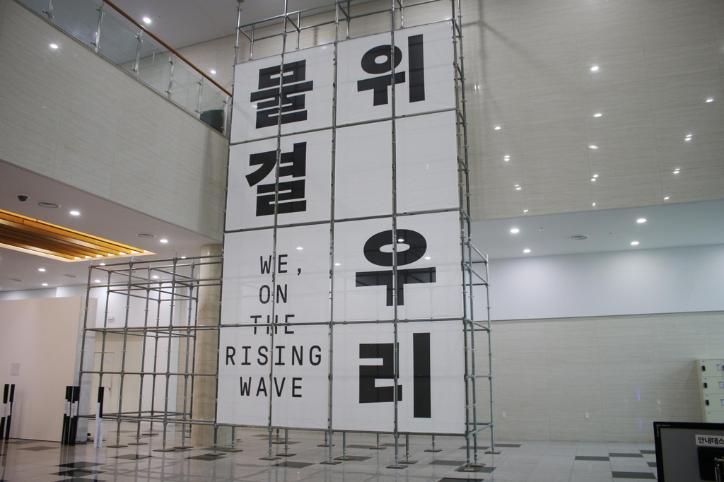 ▲ 전시 주제 '물결 위 우리' 부산현대미술관에 설치된 전시 주제 '물결 위 우리' [[부산비엔날레 조직위 제공. 재판매 및 DB 금지]