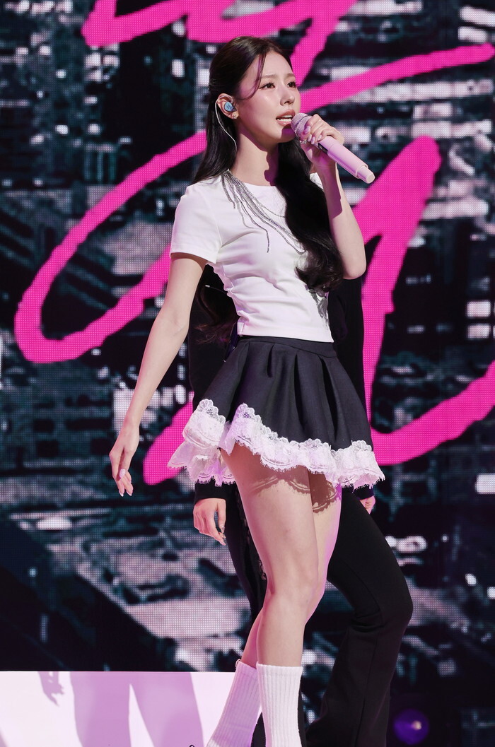 Miyeon, a member of South Korean girl group I-dle, performs during a showcase for the second solo mini album "My, Lover" in Seoul on Nov. 3, 2025. (Yonhap)